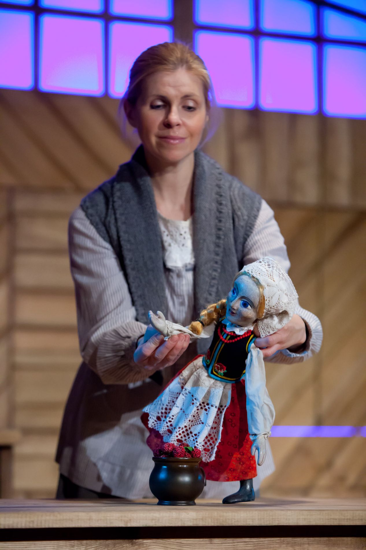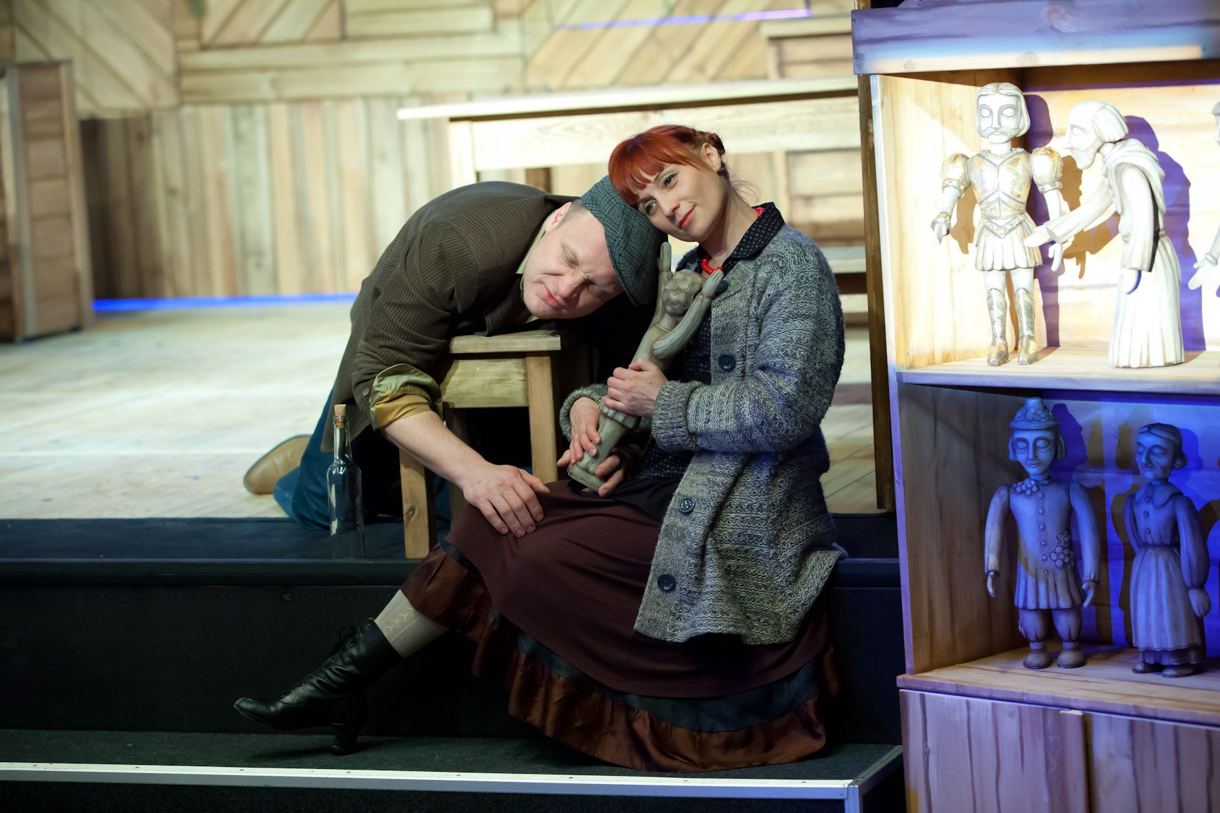 Zapraszamy na twórczą inscenizację „Balladyny” Juliusza Słowackiego. Nasz najnowszy spektakl, to niezwykła w wyrazie, autorska interpretacja klasycznego dramatu, bliskiego Szekspirowi i powieściom gotyckim, dokonana przez znanego białoruskiego reżysera Olega Żiugżdę. Jak pisze Juliusz Kleiner „Akcja opiera się na kaprysach przypadku – ale w owym szaleństwie przypadku jest metoda. […] Wśród osób dramatu jest kobieta, jakby stworzona na małżonkę Kirkora – Alina; tymczasem Kirkor Balladynę dostanie za żonę. Chodzi po lesie nadgoplańskim człowiek, na kochanka Goplany stworzony – Filon; lecz ona rozmiłuje się w rubasznym Grabcu-pijanicy. Cudowna korona czeka na czoło mądre i szlachetne [….] tymczasem najpierw głupca ozdobi, a potem zbrodniarkę”. W „Balladynie” postaci świata rzeczywistego przeplatają się z magicznymi zjawami z baśni. Surowa w wystroju gospoda staje się na przemian malinowym chruśniakiem, lasem, pałacem, polem bitwy, czy salą sądową. Wszystko to za sprawą efektownych projekcji multimedialnych i aranżacji świetlnej. Muzyka Bogdana Szczepańskiego buduje nastrój spektaklu, a całość spina klamrą jeden z najbardziej lubianych utworów w wykonaniu Anny German „Tańczące Eurydyki”. Spektakl zrealizowany jest w konwencji żywoplanowo-lalkowej.