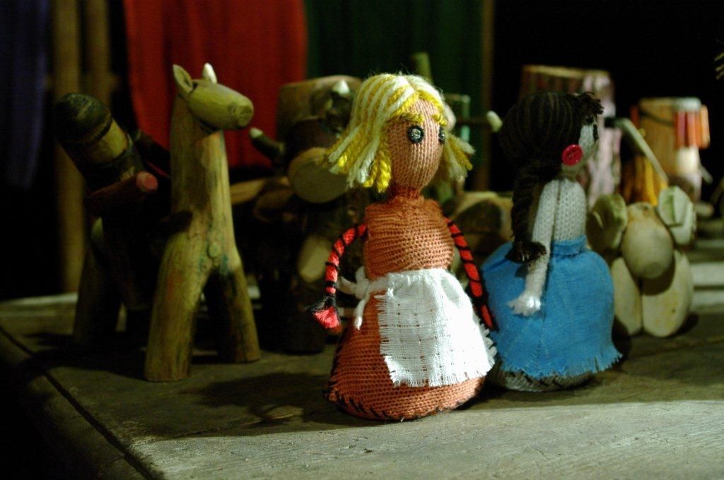 Mieszkańcy Olsztyna i Warmii mają dodatkową przyjemność w identyfikowaniu baśniowych/rzeczywistych miejsc. Zwykłą publiczność teatralną czeka po prostu dobry teatr: najprostszy, skromny, ściszony, pozwalający wybrzmieć słowu, dźwiękowi, wyobraźni, pozbawiony dymów i fajerwerków, rubasznego śmiechu i dwuznacznych odniesień. No i lalkowy, bo choć sprawcami wszystkiego są aktorzy-narratorzy, bohaterami opowieści są lalki – maleńkie, wykonane z naturalnych materiałów (drewno, włóczka, rozmaite tekstylia, z wyjątkiem czarownicy z pierwszej baśni, skonstruowanej na gumowej gruszce, dzięki której wiedźma najpierw wypije wodę, a kiedy pęknie – utworzy jezioro). Trzeba się troszkę poprzyglądać, by dostrzec lalkową urodę tego spektaklu. Na pierwszy rzut oka dominują aktorzy. Mówią tekst niespiesznie, bez zbędnych emocji, ważą słowa, dobrze dobrane, znaczące, budujące nastrój, klimat, napięcie dramatyczne. Wsłuchujemy się w ich opowieść swoiście urzeczeni tajemnicą dobrej narracji.