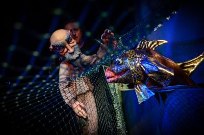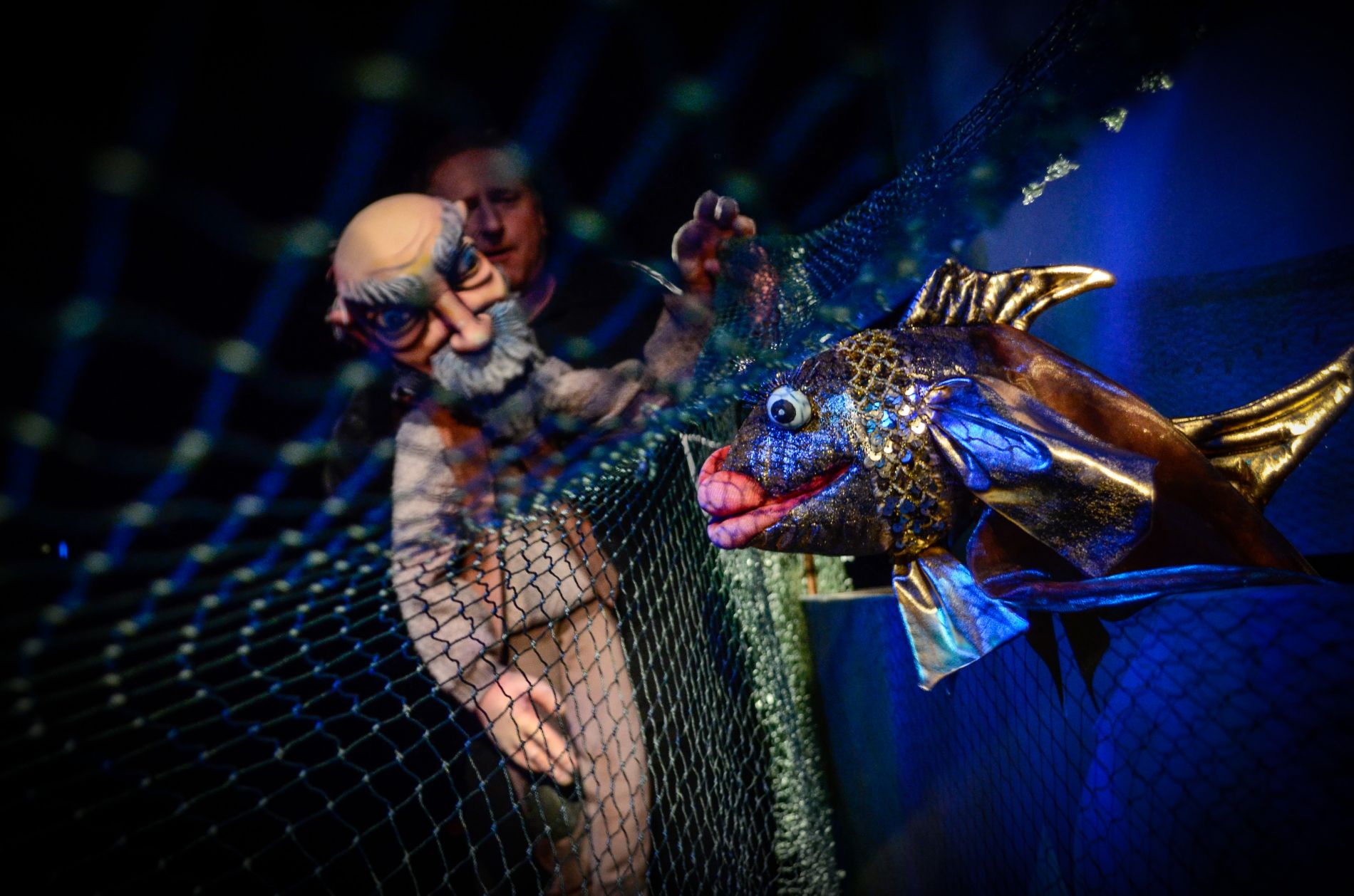 PeÅ‚na humoru adaptacja sceniczna znanej wszystkim dzieciom legendy "O Rybaku i ZÅ‚otej Rybce" oparta na motywach baÅ›ni Aleksandra Puszkina, napisana na nowo lekkim, wspóÅ‚czesnym jÄ™zykiem przez mÅ‚odÄ… dramatopisarkÄ™ MartÄ™ GuÅ›niowskÄ…, której twórczość cieszy siÄ™ ostatnio ogromnym powodzeniem. ScenografiÄ™ do spektaklu zaprojektowaÅ‚ Ireneusz Salwa. MuzykÄ™ skomponowali Marek Markiewicz i Jaromir Wroniszewski. Spektakl powstaje w ramach Sceny Inicjatyw Aktorskich OlsztyÅ„skiego Teatru Lalek. Urzeka piÄ™knem teatru cieni i animacjÄ… dużych form teatralnych.