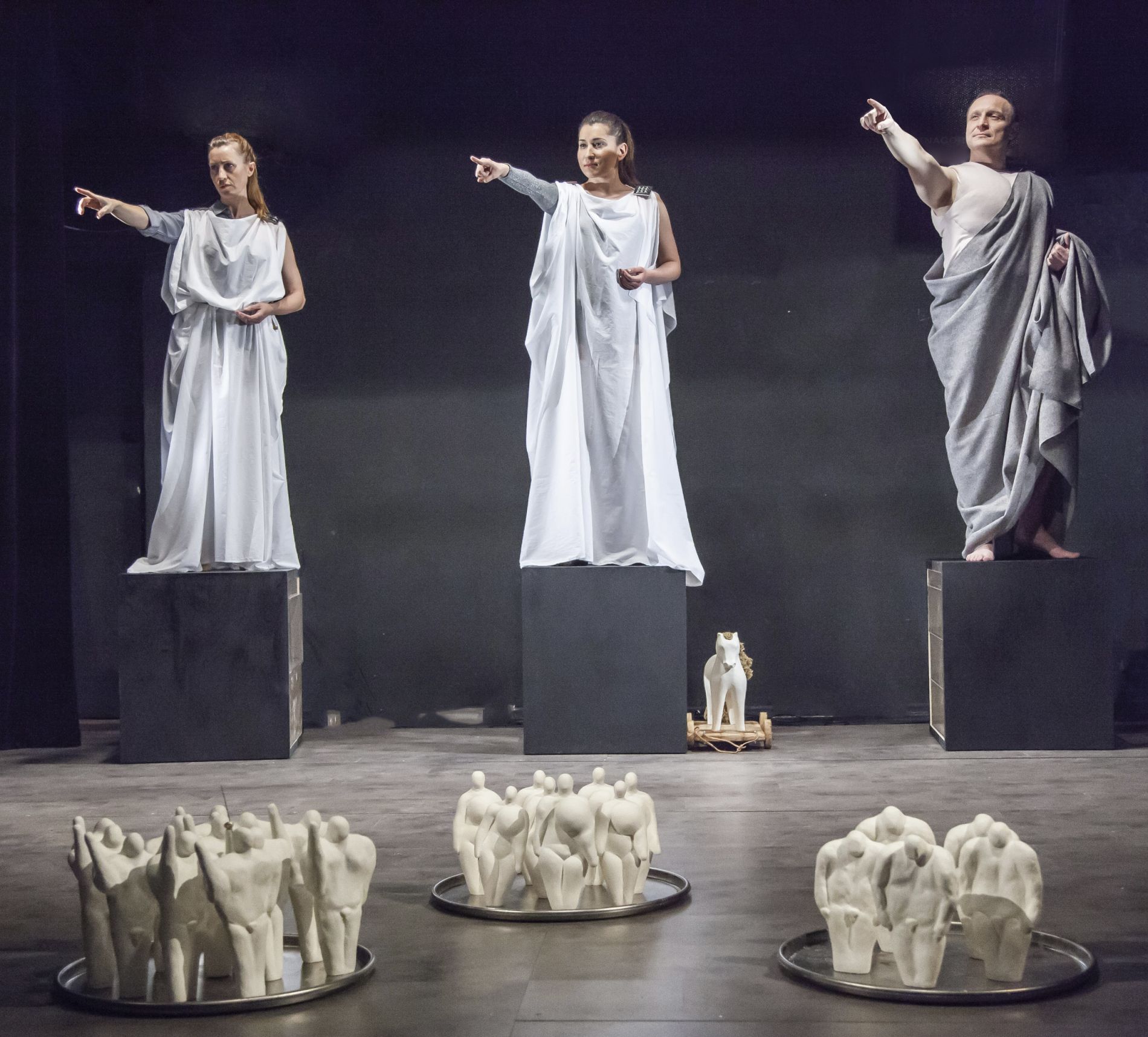 Wojna Trojańska toczy się od wielu lat. Grecy zdobyli znaczną przewagę nad broniącymi się Trojanami. Stary król Priam zwraca się z prośbą o pomoc do zaprzyjaźnionych ludów. Jako pierwsze z odsieczą przybywają Amazonki - barbarzyńskie plemię wojowniczek. Ich królowa, Pentezylea - jako dowódca połączonych wojsk trojańsko-amazońskich - nie czekając na nadejście kolejnych posiłków, nie ustalając żadnej wojennej strategii, rzuca się w wir walki. Jej motywacją nie jest chęć obrony Troi przed klęską. Młoda kobieta pragnie jedynie zaspokoić żądzę sławy. Woli jak lwica rozszarpywać przeciwników, niż dowodzić podległymi jej zastępami. Jest dzika i próżna. Egoistka. Terrorystka? W historii świata nie brakuje kobiet, które dokonywały zamachów, porywały samoloty, podkładały bomby. Okazuje się, że spisana przez renesansowego poetę Szymona Szymonowica, zaczerpnięta z mitologii historia Pentezylei jest dziś bardzo aktualna i warta opowiedzenia za pomocą języka współczesnego teatru.