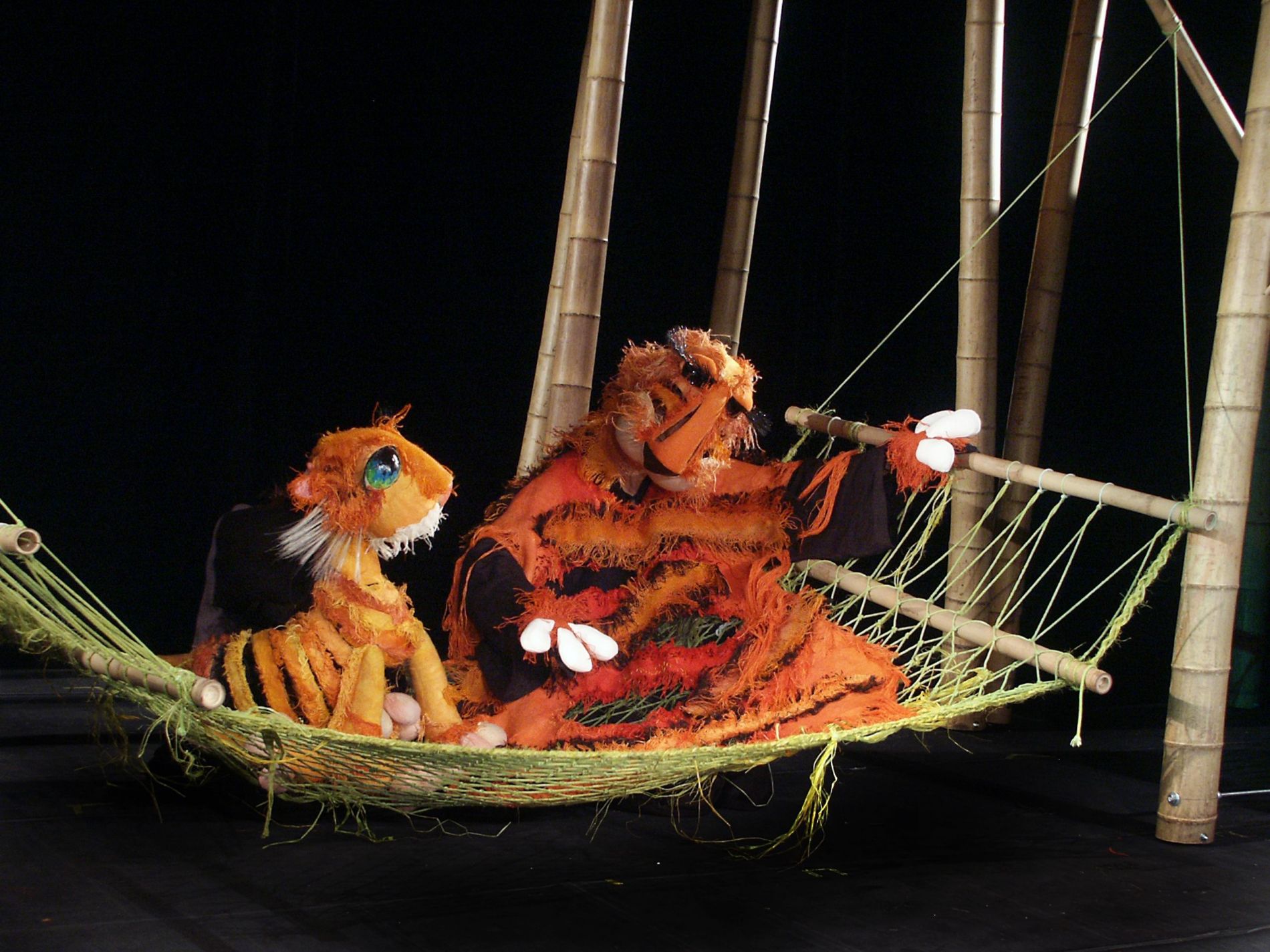 Łatwo być odważnym, gdy się myśli o innych – nie o sobie. Ta prosta prawda nie jest tak oczywista dla tygryska Pietrka. Mały drapieżnik, choć z natury powinien być groźny, wszystkiego się boi, przynosząc wstyd całemu gatunkowi bardzo odważnych tygrysów. Zwierzętom nie mieści się w głowach, że można kurczyć się ze strachu z powodu burzy, trzasku gałęzi, ciemności czy burczenia bąka. Mały Pietrek jest pośmiewiskiem całego lasu, ale w końcu przychodzi ważny moment próby – ciężka choroba mamy. Synek musi znaleźć w sobie tyle odwagi, aby wyruszyć w ciemną noc do doktora po pomoc. Gdy trzeba ratować życie najbliższej osoby, strach i lęk przestają istnieć. Spektakl zrealizowany jest w konwencji lalkowo–maskowej.